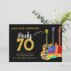 Personlig Sten 70 guld modern typografi 70:e födelsedagsfest inbjudan med musik noter och tre coolors färgstarka guitarmönster. Den här lättförståeliga mallen skapar perfektens inbjudan att fira 70 i rock n roll stil och är perfekt för en guitarist, musiker och musik i älskare. Alla gitarrer kommer att tala om för er att man aldrig kan ha för många gitarrer, så dessa elektriska gitarrer, akustiska gitarrer och semakustiska gitarrer är en bra början. Modern musikinstrumentdesign firar musikenergin hos detta underbara musikinstrument och är perfektens väg till sten en 70-årsdag för firande. Originalkonstverk av konstnären Catherine Sweetman