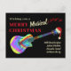 Ge musikalisk glädje och ljusa färger till festsäsongen med det här älskare Guitar-julhälsningskortet. Modern färgstark funky graffiti stil elektrisk halvakustisk gitarr som bär en rolig julhatt med musik noter på en coola svart bakgrund. Det är enkelt att anpassa skript för röd- och krämtypografi med hjälp av mallen för att skapa ett anpassningsbar helgdag-kort. Perfekt för guitarister, musiker, musiklärare, sten-band och musikälskande familjer.