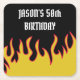 Släng en gungande födelsedagskorg med personlig party förnödenheter som dessa pappra underlägg med illustrationer av lågor i gult och rödnedgång mot en svart bakgrund. Ert budskap om anpassningsbar är skrivet i vitt, tungt metall stil.
