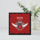 Meddela bröllop med detta okonventionella Spara datumkortet i rock and roll stil med korsade gitarrer från sten, vingar och vintage på rött och svart. Anpassa den med egen information på baksidan eller anpassa den ytterligare om du behöver ändra layout, färg, text eller inbjudan storlekt. Matchande bröllopsinbjudningar och OSA kort finns också.
