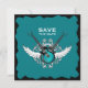 Meddela din bröllop med detta okonventionella Spara Datum-kort i rock and roll-stil med korslagda elgitarrer, vingar och vintage-ornament på tealblå och svart.