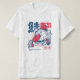 A bold pop-art style illustration of an energetic sushi character with sneakers and a wild expression, rendered in red and blue comic tones with Japanese text.