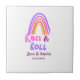Rock & roll wedding add couple name retro rainbow kakelplatta