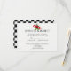Denna roliga bröllopsdesign heter Rockabilly Hearts and Rose Wedding. Bakgrunden är ett svart och vitt rutmönster, likt golvplattor från 1950-talet. I mitten av inbjudan finns en vit infälld del med en röd kontur för din text. Överst finns en röd ros och två hjärtan med banderoller för brudens och brudgummens namn utförda i en livlig akvarell. Denna uppsättning innehåller inbjudningar, kort för "spara datum", svars kort, tackkort, kort för tabellnummer, vinetiketter och många fler bröllopsdetaljer, presenter och gåvor tillgängliga. Alla element är tryckta på våra högkvalitativa produkter, de innehåller inte riktigt guld, juveler, prägling eller andra textila element. Alla mönster är copyright Noteable Expressions, Inc. Alla rättigheter reserverade. Vänligen maila mig på N