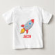 Ett färgstarkt och attraktivt baby kostym med en raketblåsande frakt till rymden för att utforska galaxen. Anpassa till namn för att göra extra speciellt för pojke. Underbar som en babydusch eller första födelsedagspresent till småbarn.