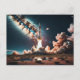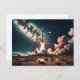 Rocket frakt tar sig från en främmande planet med Milky Way i bakgrunden