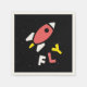 Retro, popande, färglöst skapelse av en Rocket, Napkins. Speciellt färgämne för rött, Gult och vitfärg, med enkel men elegant ikon formaterad konst. Original digital Art by Raphael Studio - 'Rocket'. Retro pop stil, unik design.