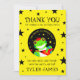 Tack gästerna för att de närvarade vid sina första födelsedagar med det här vita tackkortet, som innehåller en söt träd groda med flammigt rödspikat hår och rockar en röd gitarr på en stjärnsvart bakgrund! Design © W.H. Sim. Se mer på zazzle.com/expressionsoccasions