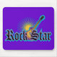 "Rockstjärna" designad i svart, lila och blått med gitarr och solsprängning.