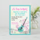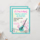 Rockstjärnans gigantiska matlagningsinbjudan, som innehåller en turkosblå elgitarr på abstrakt med mönstrad rosa-snurrar och löv, musik noter på pentagram med tredubbel klyva, stjärnor och runt den blå gräns. Det finns texten "Det är dags för sten" i ett coola med döskallar. En modern, söt inbjudan till trendiget barns födelsedag.