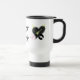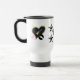 Presenterar en sebrastenhjärta, på varje sida med rosa och svart stjärnor between på vittravel mugdesigner som skapas av Paris Jazzdesigner och Rabecca Primeau