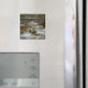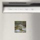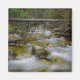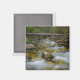 Fotomagnet från Souvenir med vatten med rörelse-oskärpa i en klippt bäck i en skog i Norge med fallande träd som bron över den.