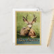 Vintage resestil Rocky Mountain National Park bild med en vacker hjort med fullständiga horn som sitter på det gröna gräset.