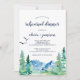 Den här "Rocky Mountain rehearsal Middag"-inbjudan är perfekt för en bröllop-repetition utomhus. Utformningen har ett blått och grönt målat vildmarkslandskap med vattenfärgen gräs träd, fåglar och berg.