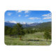 Rocky Mountain National Park är känt för de fantastiska Klippiga bergen - som syns här med snötäckta toppar, med frodig grön skog i förgrunden och blå himmel. Den här bilden finns också som den bredbildade tapeten "Rocky Mountain View" på www.mlewallpapers.com.