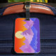 Rocky mountains Golden Hour Sol Art Luggage Tag står ut på karusellen med detta designade pakethjällmärke för Rocky Mountain. Vacker blå Rocky mountains med sol som lyser vid gyllene timmen med rött, orange och gult. Köp vår butik för fler designer från bergshuset på olika produkter för dina restillbehör.