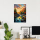 Rocky Riverbanks and Autumn Forest Under Sunset Poster