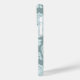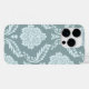 A vintage style decorative damask off-set surface pattern influenced by rococo classical design in duck egg blue color detail on a teal background.