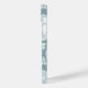 A vintage style decorative damask off-set surface pattern influenced by rococo classical design in duck egg blue color detail on a teal background.