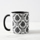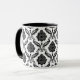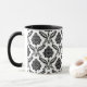 A vintage style decorative damask surface pattern influenced by rococo classical design in black detail on a white background.