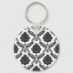 Rococo Damask Pattern Black on White Nyckelring
