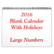 I 2016 finns en tom kalender med Helgdagar med stora tal och röd tråd med röd anpassade på förstasidan och helgdagar och händelser i USA och Kanada.