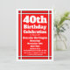Skicka ut inbjudningar till en 40-årsfirande med denna röda inbjudan till 40-årsdag. Den kan anpassas med din personliga information.