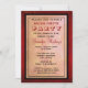 En möhippeinbjudan. En mörkröd bakgrund med slumpmässiga marmorerade repor. En blomsteröverdrag med svart kant för att fylla i dina uppgifter.