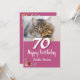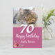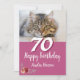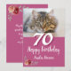 Röd akvarellros kattfoto 70-årsdags kort. Akvarellrosor i röda och orangea färger på en rosa bakgrund. Ett foto av en katt för kattälskare. Lägg till namn och meddelande på baksidan.