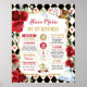 Bedårande födelsedagstavla med fantasifulla Alice i Underlandet-element i röd, svart och guld färgschema