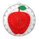 Är du tittar för en söt dartboard? Den här ritytan har en bild av ett rött äpple med grönt löv.