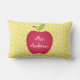 Röda den Apple personliglärare Lumbar kudder. Perfekt för lärare klassrumstol. Båda personifieras sidan med lärare namn. Bakgrund är gul, & vit kretsar mönster.