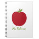 En spiral anteckningsbok för lärare som presenterar en illustration av ett rött äpple. Personifiera med ditt namn.