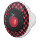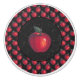 Linda Baysinger hack målning av röda mogna äpplen, på svart svart tavlabakgrund, med gränsen av mindre äpplen.