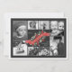 En underbar reflexinspirerad utformning av vismisk blommigt och trendig-typografi. Poinsettias, bär och små blommor av elfenben och blått, tillsammans runt en röd banderoll av vintage med texten "God jul" och satt på ett djupt kol-grått. Med åtta foton i en kollage på framsidan, med plats på baksidan för att lägga till ditt personliga meddelande och namn.