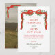 Elegant röd banderoll grönskande foto jul helgkort. Klicka på knappen för att anpassa designen med dina detaljer.