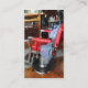 Röd barberarestol visitkort