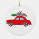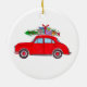 Röd bil med Julgran vattenfärg Julgransprydnad Keramik