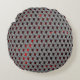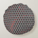 Röd bild under grått tallrikar, rektangulära forme rund kudde