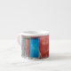 Röd, blå och grått vägg, dörr och fönster espressomugg