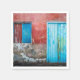 Röd, blå och grått vägg, dörr och fönster pappersservett