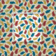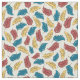 Den här lekande mönster koordinerar med mönster från min fågeldag i Lycklig och har tecknad stil illustrationer av fjädrar i rött, gult och blått mot en benvit eller gräddvit färgad.