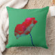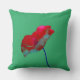 Röd blå vallmo på emerald grönt kudde