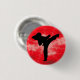 Kampsportkvinnan på en röd stormig bakgrundspinback knäppas.