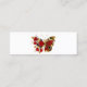 Röd blomsterfjäril med rött texturerat vinge, dekorerad med rödfärgad, artificiellt målad ro med gyllene stjälkar och löv på vit bakgrund.