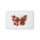 Röd blomsterfjäril med rött texturerat vinge, dekorerad med rödfärgad, artificiellt målad ro med gyllene stjälkar och löv på vit bakgrund.