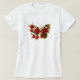 Röd blomsterfjäril med rött texturerat vinge, dekorerad med rödfärgad, artificiellt målad ro med gyllene stjälkar och löv på vit bakgrund.
