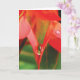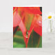 En vattendroppe vilar i en kronas V, på detta sensuella, sexiga, röda blommotiv. Välkomstkort med dikt: