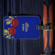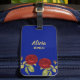 Röd blomma och löv blå bagagebricka