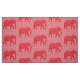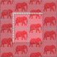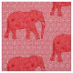 Digitalt grafiskt för blandat massmedia av en elefant mot ett arabesque belagt med tegel bakgrundstyg - blommamönster skuggar in av djupt - som är rött till korall som är röd med en röd korall och vitbakgrund